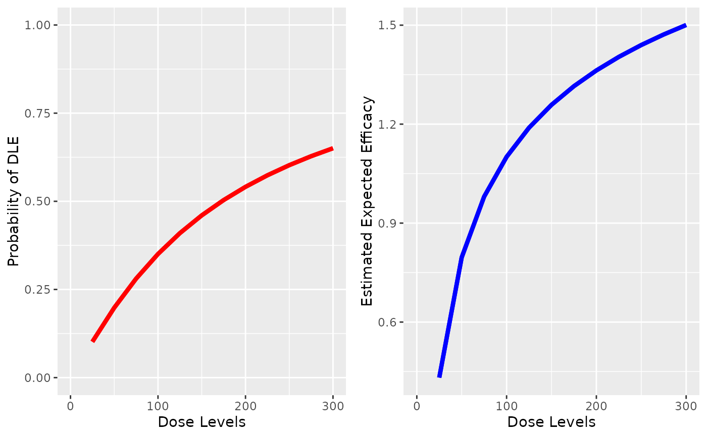 Plot of the dose-DLE and dose-efficacy curve side by side given a DLE pseudo model and a given pseudo efficacy model without DLE and efficacy samples